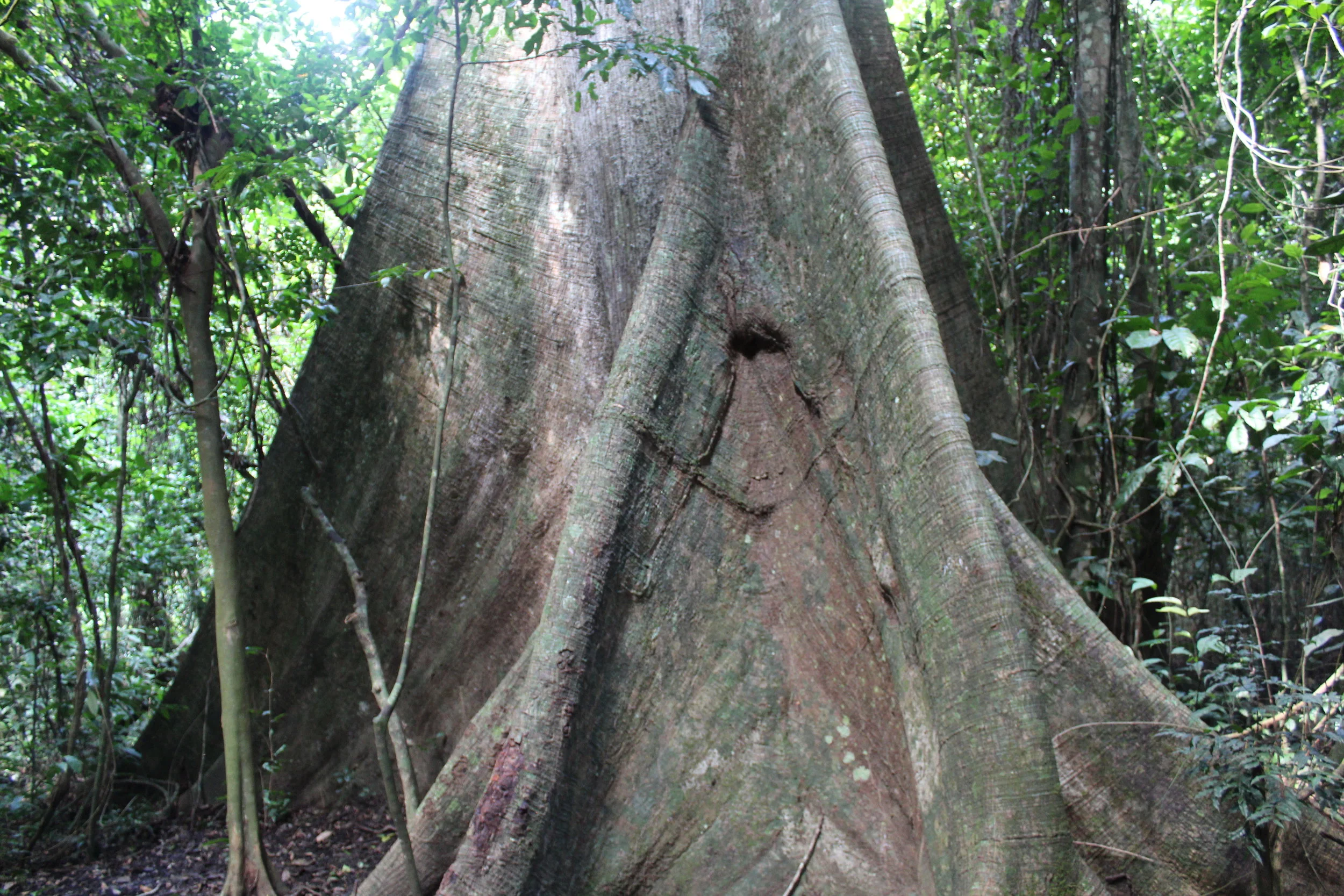 So we’re walking and the guide is talking; I still haven’t seen an ounce of sweat on her brow, by the way. We come to the end of this narrow and burdensome trail to reveal the biggest tree in the forest. Really spectacular, see below.